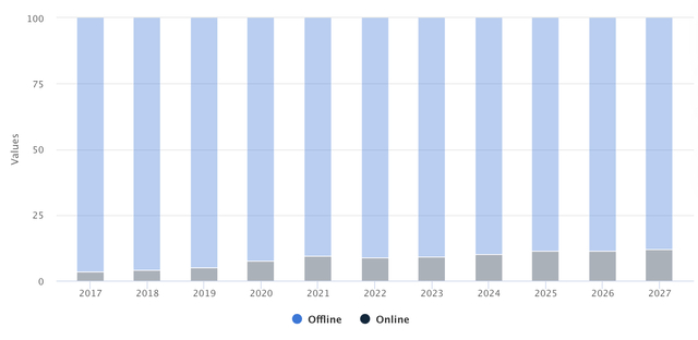 Statista数据表明,拉丁美洲的电子商务渗透率仍然相对较低。这些数据为那些考虑对该行业进行长期投资的人提供了支持。