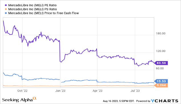 从历史上看,就可比指标而言,MercadoLibre目前处于最“实惠”的状态。故意使用引号是因为尽管如此,该公司的股票继续以许多人认为在零售领域溢价的价格交易。