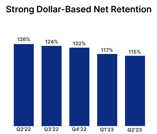 鉴于收入快速增长和大付费客户数量增加的背景,人们越来越难以忽视其疲软的营业收入、不断扩大的净利润损失以及膨胀的自由现金流。公司什么时候才能扭亏为盈?更不用说,就连其营收增长也呈现出停滞不前的迹象。以美元计算的净留存率虽然仍处于较高水平,但一年来一直持平甚至下降。