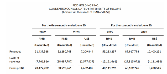 8月29日,拼多多(NASDAQ:PDD)公布了截至2023年6月30日的第二季度未经审计的财务业绩,实现营收522.8亿元,同比增长66%。营业利润12.7亿元,同比增长46%。近年来,拼多多的财务表现一直强劲,过去五年时间里,其营收增长了近十倍。此次财报,拼多多的增长速度依然遥遥领先,且财务数据保持稳健。