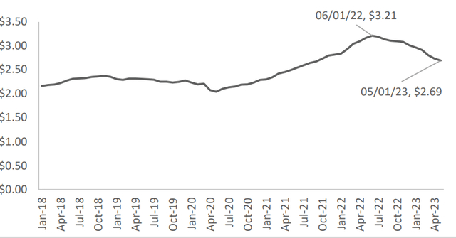 尽管自公司 2023 年第一季度指导以来,价格小幅上涨了 3.5%,但总体趋势自年初以来一直呈持续下降趋势。