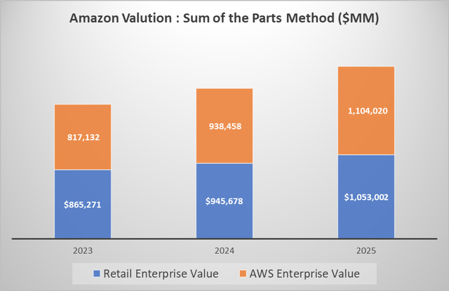 估值方法采用“部分总和”的方法,考虑两个核心领域:零售和亚马逊网络服务。