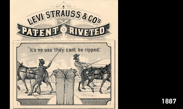 在野外艰苦环境中工作的掘金者常常会抱怨裤子不够坚固。犹太商人李维·斯特劳斯(Levi Strauss)洞察到了这个商机,并发明了第一条牛仔裤——一种用结实的防水布制作的罩裤,铆钉的设计增加了裤子的耐用性,口袋里额外的小口袋可以存放金子这种贵重物品。李维斯这个品牌,由此诞生。