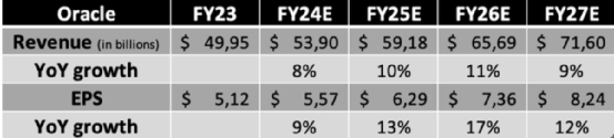 基于低于预期的第二季度前景和好坏参半的第一季度业绩,甲骨文需要在本财年下半年取得更好的业绩和增长。随着这些发展,现在预计 2027 财年的财务业绩如下。