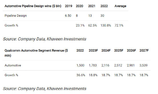 根据之前的财报简报,高通强调全球汽车制造商正在采用其 Snapdragon 数字底盘,其中包括与梅赛德斯-奔驰的合作。最近,该公司表示已与汽车制造商为其汽车平台获得了 10 多种新设计。此外,据该公司称,其汽车产品线继续大幅增长,到 2022 年底将达到 300 亿美元,增幅达 131%。因此,尽管由于管道增长加速而导致近期美国经济放缓,但该公司汽车领域的前景仍然稳健。
