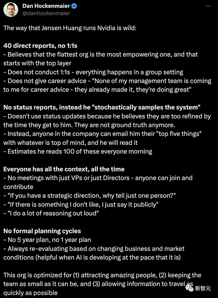 最近同时大火的,还有黄仁勋管理英伟达的方法。