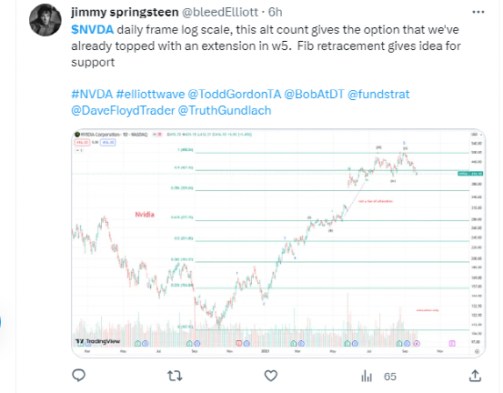 jimmy springsteen:$NVDA 日线框架的对数刻度,这个替代计数提供了一个选项,我们已经见顶,在W5的扩展。斐波回撤提供了支撑。