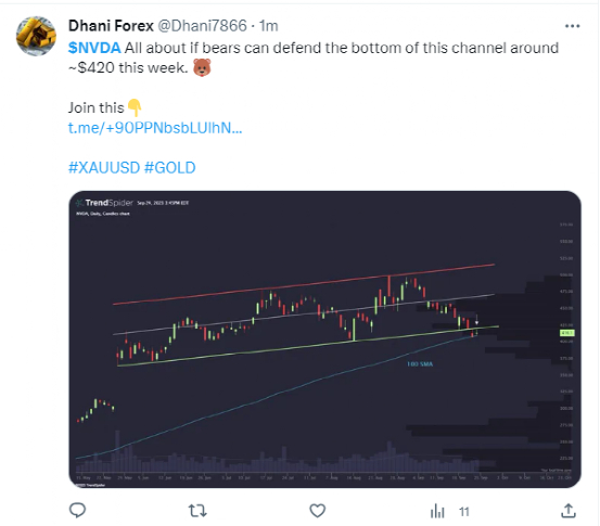 Dhani Forex:$NVDA 本周熊市能否守住 ~$420 附近的通道底部。🐻