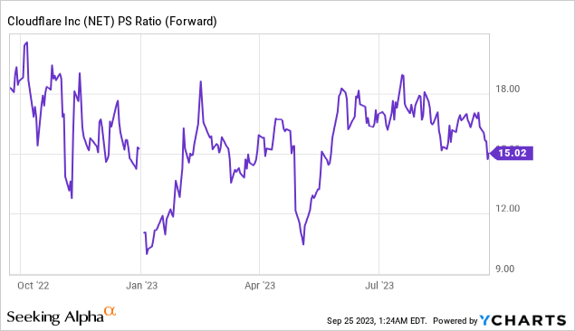 毫无疑问,Cloudflare 的倍数比过去便宜很多。回顾过去,在其巅峰时期,Cloudflare 的定价一度是远期销售额的 90 倍(数据未显示)。