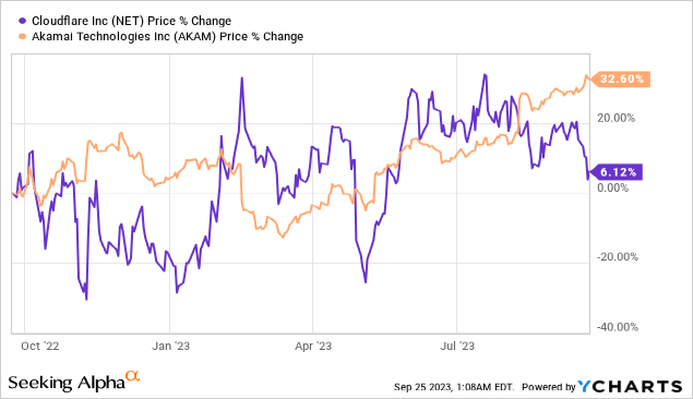 顺便说一句,在过去的一年里,Akamai 的波动性明显低于 Cloudflare,而且表现也更好。话虽如此,过去的表现并不代表未来的回报。
