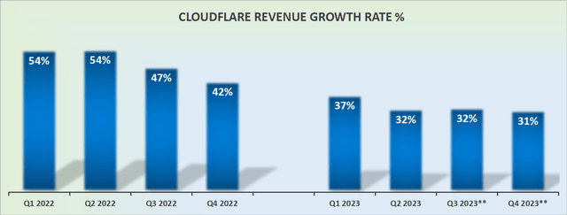 首先,我们来讨论一下好消息。好消息是 Cloudflare 仍在实现非常强劲的增长。此外,与上一年的可比性开始放缓,这意味着 Cloudflare 很有可能继续以 30% 的复合年增长率增长到 2024 年。