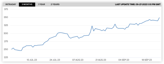 极端天气和柑橘病害打击橙子产量,洲际交易所冷冻浓缩橙汁(FCOJ)期货价格不断走高,目前处于每磅3.56美元的高位,期货价格上涨,最终将反映在零售终端价格上,超市里橙汁的价格,可能很快就会上涨。