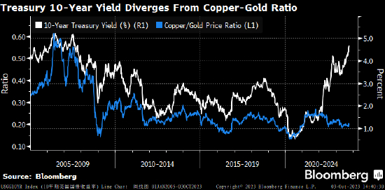 Yardeni还指出了传统相关性消失的一个例子。“从2005年到2019年债券收益率与铜金价格之比高度相关。自那以后两者背道而驰,”他说。
