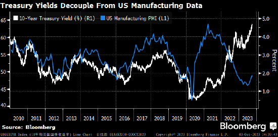 美国10年期国债收益率周一飙升至16年来新高,延续5月份开始的上升趋势。摩根大通认为近期收益率飙升显示美债正在脱离基本面驱动因素。