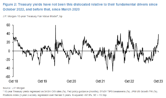 基准10年期国债收益率目前比该行公允价值模型所显示的高出40个基点,差额为去年10月以来最大。