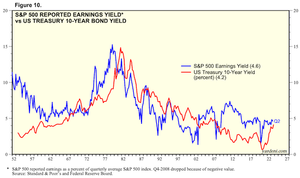 目前,标普500的收益率和美国10年期国债收益率之间的差值不断缩小,显示买入股票的性价比降低。这也是为何在高企的债券收益率下,风险资产普遍承压。