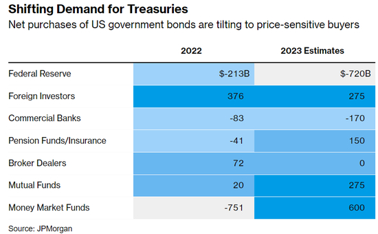 摩根大通资产管理公司的投资组合经理Priya Misra说:“我们必须面对不同的国债买家群体。国债的边缘买家将是资产管理公司。这将意味着更多的波动,因为这些买家对价格和流量更加敏感。外国央行不得不投资其储备,银行不得不投资其存款。但资产管理公司的需求由资金流入和不同资产类别表现而定的。”