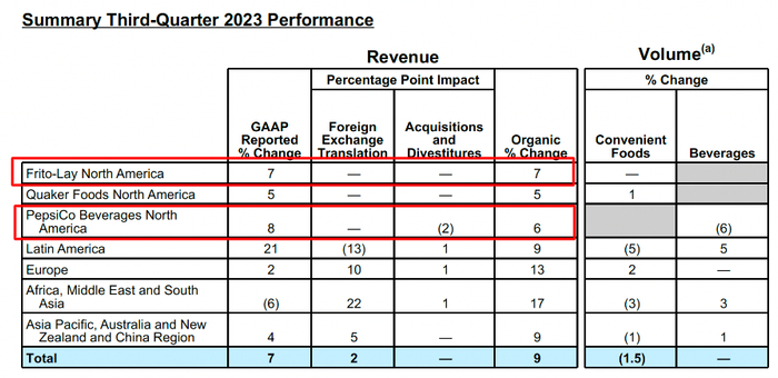 同样,一个能够更好地反映增长质量的指标——有机收入(剔除汇率、收购及剥离资产等影响的收入计算方式),也录得了同比8.8%的超预期增长。三季度核心财务指标全面超预期,让百事管理层对增长前景更加乐观,预计2023年按固定汇率计算的每股收益将增长13%,高于此前指引的12%。
