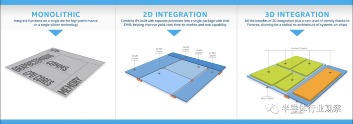 为了解决这些问题,几年来,片上系统开发人员已经开始将其更大的设计分解为更小的小芯片,并将它们在同一封装内连接在一起,以有效增加硅面积等优势。在 CPU 中,这些链接大多是所谓的 2.5D,其中小芯片彼此相邻设置,并使用短而密集的互连进行连接。既然大多数主要制造商已经就 2.5D 小芯片到小芯片通信标准达成一致,这种类型的集成的势头可能只会增长。