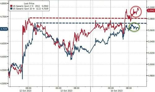 目前,2年期美债收益率已经突破了上周四超预期的美国9月CPI数据后所录得的高位,而10年期美债收益率也重新回到了4.7%关口上方。投资者当前在关注中东局势的同时,也正试图更好地衡量美联储抑制高通胀的努力与近来长债期限溢价走高之间的关系。