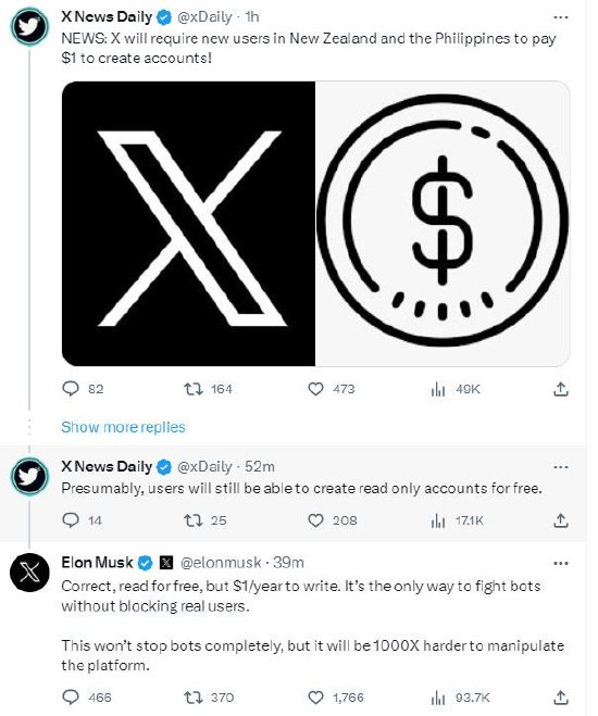 X的支持账号发帖称:“从今天开始,我们将在新西兰和菲律宾测试一个新项目。新的,未经认证的帐户将需要注册1美元的年订阅费才能发布并与其他帖子互动。在此测试中,现有用户不受影响。