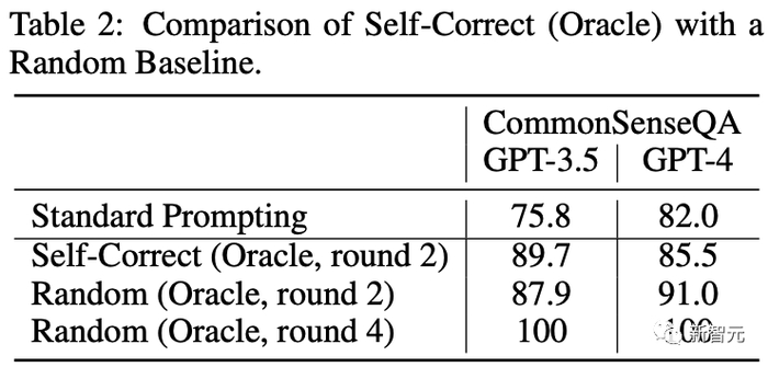 让研究人员再看一下上表1中显示的结果。这些结果使用真值标签来防止模型将正确答案更改为错误答案。