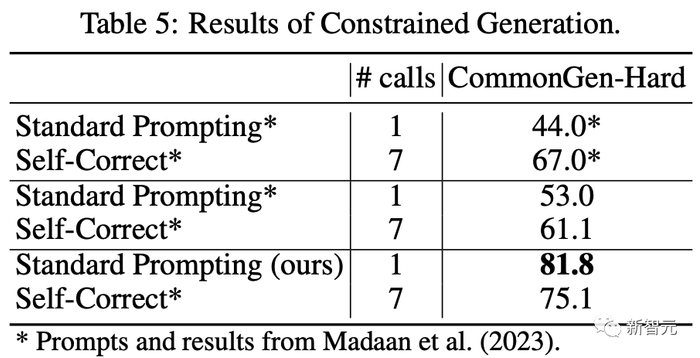 上表5中的结果表明,研究人员精心设计的提示‘标准提示(研究人员的)’优于之前研究的自我校正后结果。