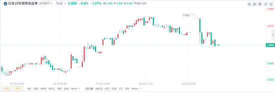 周二,日本央行宣布计划外债券购买操作,包括3000亿日元的5至10年期债券和1000亿日元的10至25年期债券。此前,日本10年期国债收益率升至0.88%的十年高位。