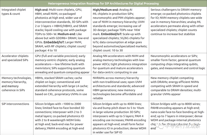从以上分析可以看出,MAPT对于数字逻辑电路的进一步演进是以高级封装技术为主线,使用基于高级封装技术进一步提升集成度、降低数据移动开销并且实现专用架构设计的集成,从而让芯片性能和能效比在未来十年中继续摩尔定律时代的指数级提升。