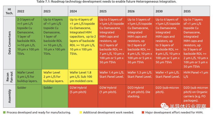 这些需求具体对应到高级封装的技术演进,MAPT在高级封装章节提出了未来十年的技术演进方向。