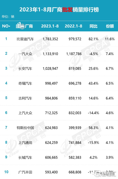 按乘联会数据显示,今年前8个月,日系车累计下滑了17.1%,是除法系车之外下滑幅度最大的车系。从销量排名来看,今年前8个月,车商批发销量排行榜中,仅有广汽丰田一家日系品牌挤进榜单,位居第十名。