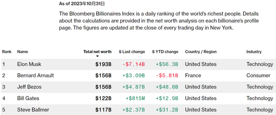彭博亿万富翁指数的最新估计显示,截至10月31日,马斯克的净资产为1930亿美元。这是自6月初以来他的财富首次跌破2000亿美元。