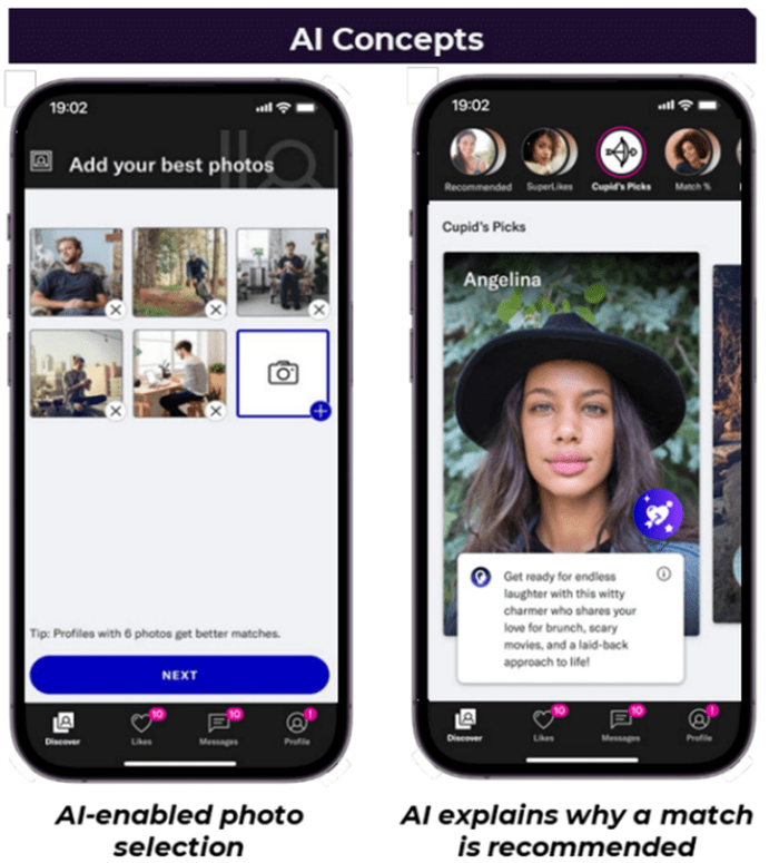 Tinder的AI照片选择器最近经过测试,可以浏览用户的相册并为个人资料选择最好的照片。这可能会导致用户增长和更快的客户支出。该技术还可以更好地匹配公司平台上的人员,可以在实时视频中对人员进行配对。其他用途可能包括提示的生成和选择以及个人资料图像的创建。然而,使用人工智能管理个人资料可能会导致个人资料不太真实,Match必须在风险与收益之间进行权衡。