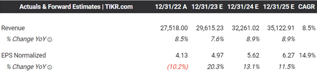 此外,共识仍然估计,到 2025 财年,PayPal可能会以 +8.5% 和 +14.9% 的复合年增长率产生相当不错的顶线和底线增长,其趋势仅从之前的 +16.8% 和 +18.4% 的复合年增长率正常化。分别为 2016 财年和 2022 财年之间的百分比。