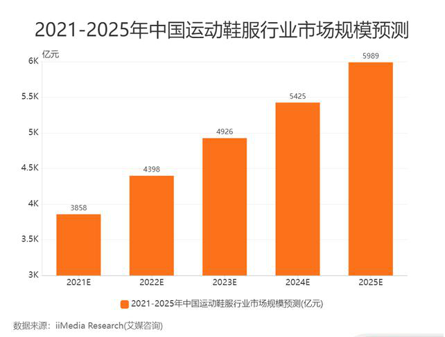 可以看出,中国市场仍将是阿迪达斯未来十分重要的战场,而为何如此重视这片市场,主要还是因为市场前景广阔、消费群体庞大。艾媒咨询数据显示,2021年我国运动鞋服市场规模达3858亿元,预计2025年将达到5989亿元。抓住了中国市场就意味着企业发展可观的“钱景”。