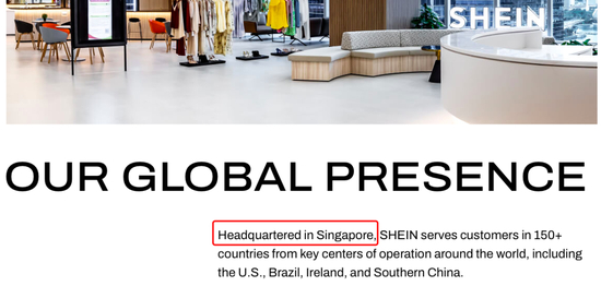 在官网上,SHEIN称总部位于新加坡, 同时,SHEIN的主营业务均在境外。