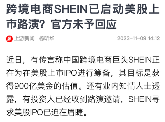 2023年5月1日,有媒体报道称,一些美国国会议员向SEC递交《公开信》,呼吁停止SHEIN的IPO进程,拒绝其在美融资。这一度被外界视为SHEIN赴美上市的“侧面印证”。