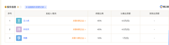 爱企查显示,南京点唯信息技术有限公司成立于2008年10月,许仰天、王小虎各持股45%、李鹏持股10%。不过该公司已于2016年注销。
