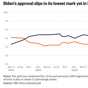 更重要的是,民调还发现,在假设的2024年大选巅峰对决中,拜登首次落后于前总统唐纳德·特朗普,尽管两人的支持率差距完全在民调的误差范围内。