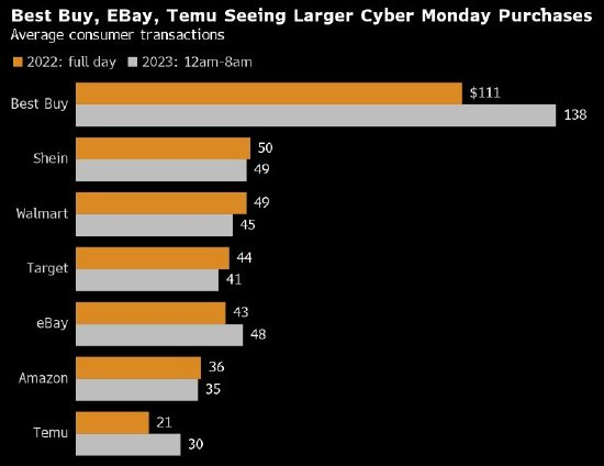 Adobe Inc.数据显示,在网购星期一期间美国购物者将在网上花费124亿美元。基于黑色星期五的支出强于预期以及先买后付功能的流行让购物者可以用信贷来扩大预算,该公司上调了最初120亿美元的预测。