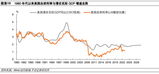1960年代以来,美国名义政策利率先升后降,呈现倒V型走势,拐点出现在1980年代。1980年代以前,美国经历了战后复苏与工业化,同时也经历了高通胀扰动,美联储政策利率在波动中呈上行趋势;1980年代以后,美国经济步入“大稳健”时期,同时也步入“去工业化”时代,潜在经济增速逐步下行,通胀及通胀预期逐步稳定,美联储政策利率在波动中呈下行走势。美联储前主席伯南克曾解释低利率的原因,认为美联储并非“有意”设置一个很低的利率水平,而是选择将利率设置在一个更低的“均衡利率”水平附近,令资本和劳动力水平充分利用、经济健康运行。