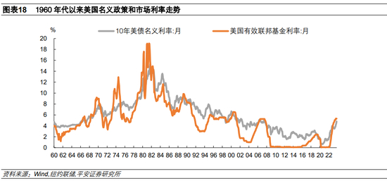 回顾本轮美联储抗通胀历程,美联储一度“落后于曲线”,所以不得不在通胀过高时采取激进的紧缩政策。迄今为止,美联储紧缩不足与紧缩过度的风险趋于平衡,下一步将面临高利率维持多久、何时降息的关键选择。展望2024年,如果美国经济有幸避免陷入危机,能够保持相对平稳运行,美联储或将选择“预防式降息”,以避免经济过快下行。更长远看,考虑到美国自然利率具备上修空间,通胀即便回落也可能略高于2%的目标,美国中长期政策利率可能明显高于新冠疫情前水平。
