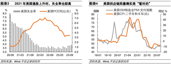 美联储被认为一度“落后于曲线”,未能及时出手遏制通胀,也就不得不在通胀过高时采取激进的紧缩政策。如何理解美联储对通胀态度的“急转弯”?首先,美联储遏制通胀的步伐曾受就业目标的束缚。2021年,美国经济复苏基础并不牢固,失业率在大部分时间里保持在5%以上。在“类滞胀”环境下,美联储希望平衡就业与通胀目标,通过“通胀暂时论”支撑其宽松政策取向;11月,当美国失业率回落至4.5%以下,美联储才更有转向的底气。其次,“通胀暂时论”并非全然误判,只是供给因素的改善比预期得更慢。2021年二季度开始,美国通胀压力主要来自供应链阻塞,美国ISM制造业PMI交付指数一度升至70以上,美国CPI二手车和卡车分项同比高达20-45%,拉动CPI通胀率0.9-1.9个百分点。2022年初,地缘冲突又阶段性加剧了能源短缺与供应链压力。不过事后来看,供应链压力确实是“暂时的”,到2022年四季度,美国制造业PMI交付指数回落至50以下,美国二手车和卡车对通胀的拉动转负。最后,不排除美联储主席换届对货币决策的影响。2021年,美联储主席鲍威尔维持宽松立场,或也出于退出宽松政策可能招致民主党政府不满的顾虑,尤其考虑到其竞争对手布雷纳德十分鸽派。2021年11月获得提名后,鲍威尔对通胀的态度恰好发生明显转变。