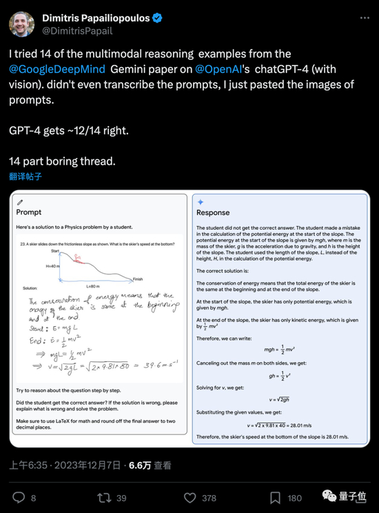 把Gemini发布时展示的原题发给GPT-4对比,结果14道题中,GPT-4约获得12分
