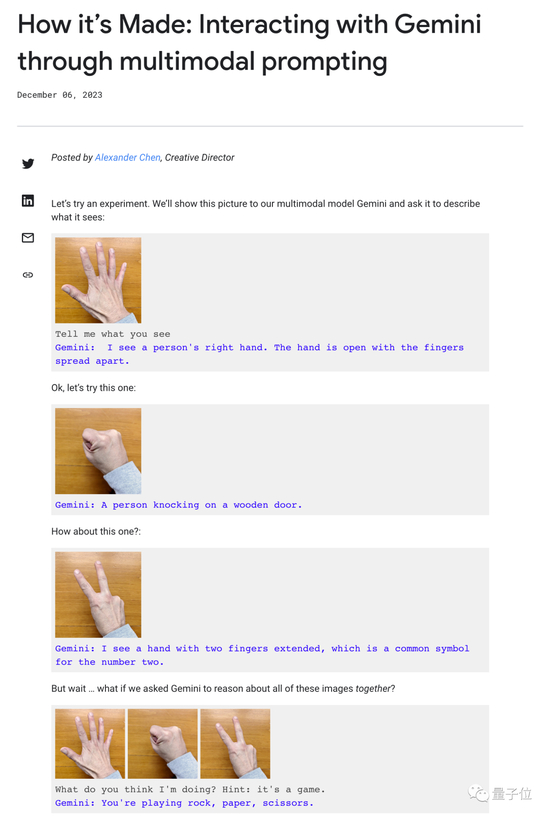 后来谷歌在一篇博客文章中解释了多模态交互过程,几乎承认了使用静态图片和多段提示词拼凑,才能达成这样的效果。