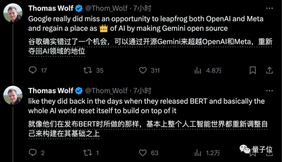 HuggingFace联创Thomas Wolf认为,谷歌错过了一个重要机会: