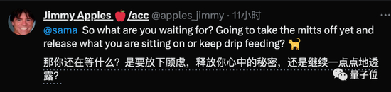 其中著名OpenAI爆料账号Jimmy Apples,@Sam Altman并暗示OpenAI还有没发布的大招