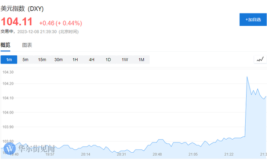 三大股指期货跌幅扩大。纳指期货跌0.83%,标普500指数期货跌0.50%,道指期货跌0.39%;美元指数短线走高,报104.24。美国2年期至10年期国债收益率日内上涨10个基点。
