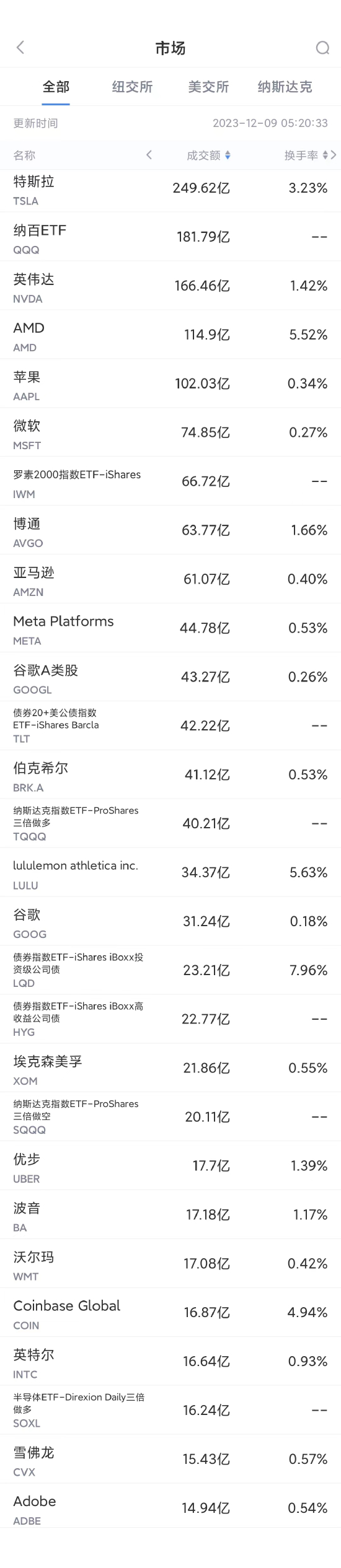 12月8日美股成交额前20:特斯拉第七大股东敦促其尊重劳工权利