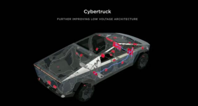 早在今年3月的2023投资者日上,特斯拉就宣布,在Cybertruck及以后的车型上,将全面转向48V低压电架构。